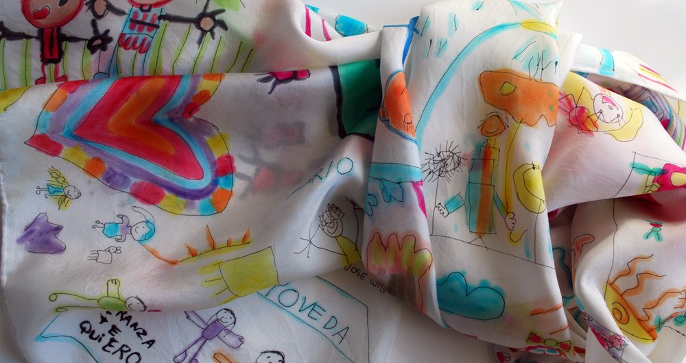 If you desire something truly unique for you, make a custom order: scarves with children drawings -the best gift for a teacher at the end of the school year-, silk blouses for special events, hand fans for bridesmaids or wedding gifts, personalized scarves for anniversaries, or any of my work on silk personalized as a special gift…
